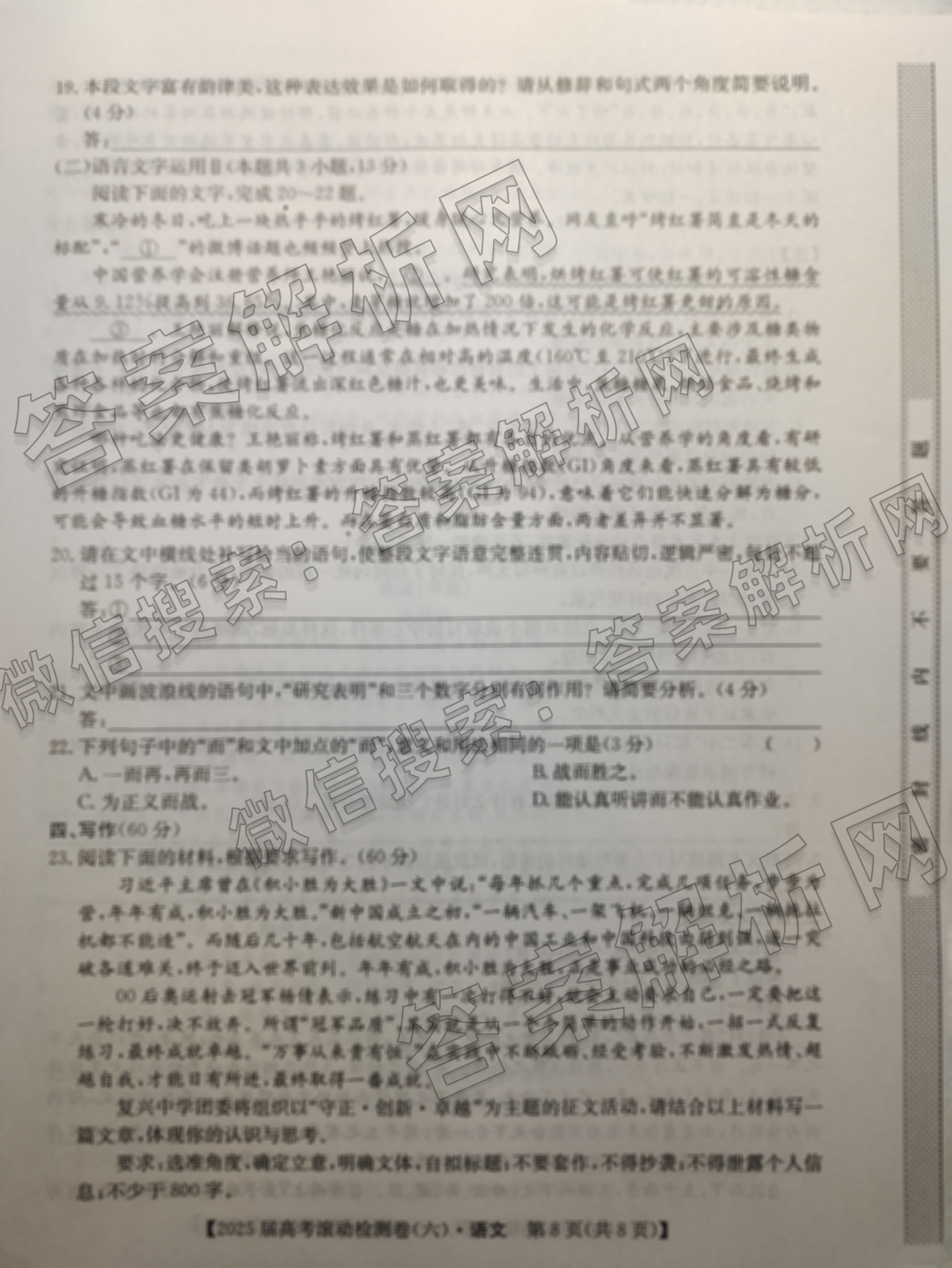 2025届高考滚动检测卷(六)6语文试题由衡水金卷答案整理,获取更多高考滚动检测卷答案解析,请在各大应用商店搜索下载答案解析网APP。