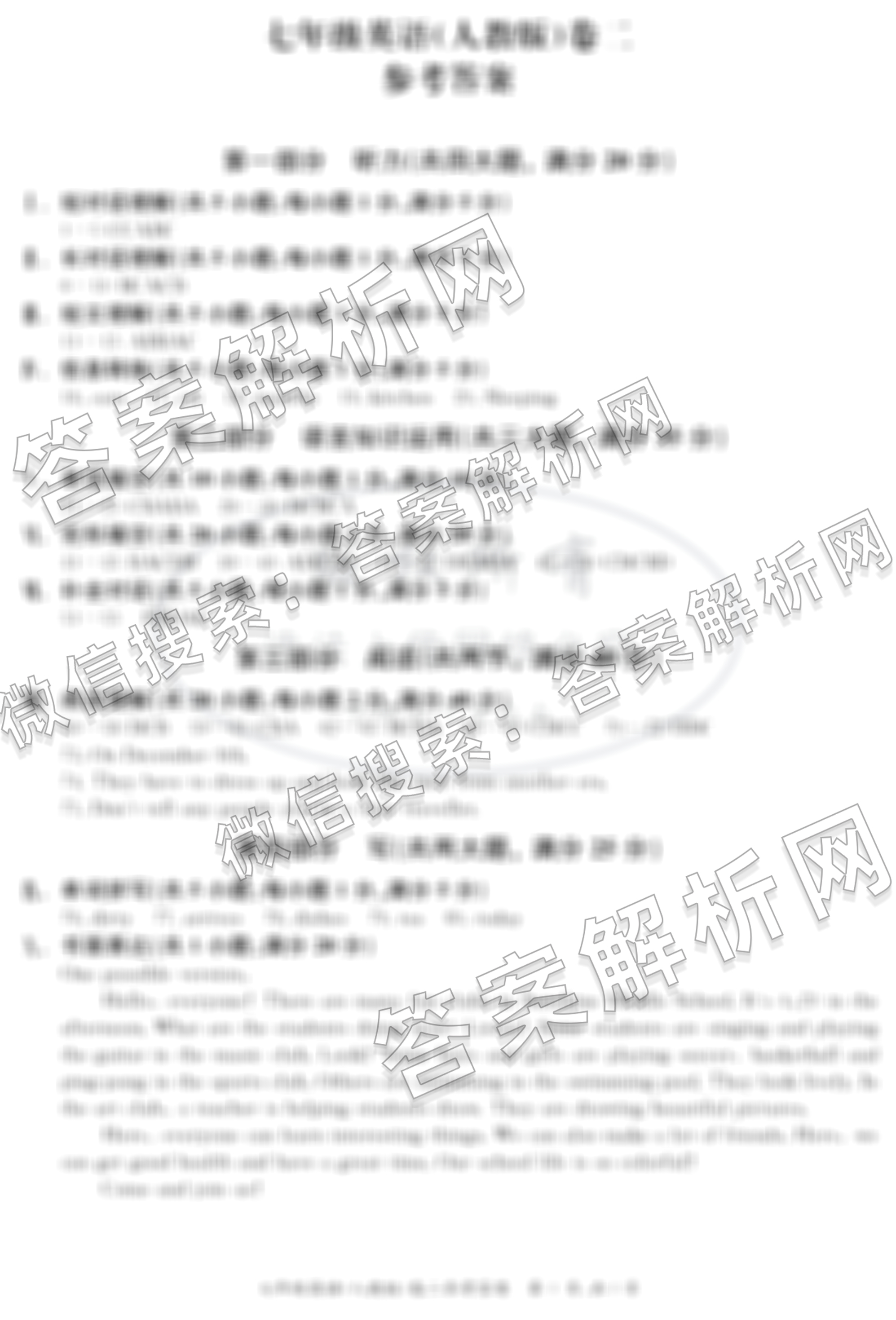 - 2023-2024(七年级)学年下学期教学评价二(期中)英语(人教版)答案