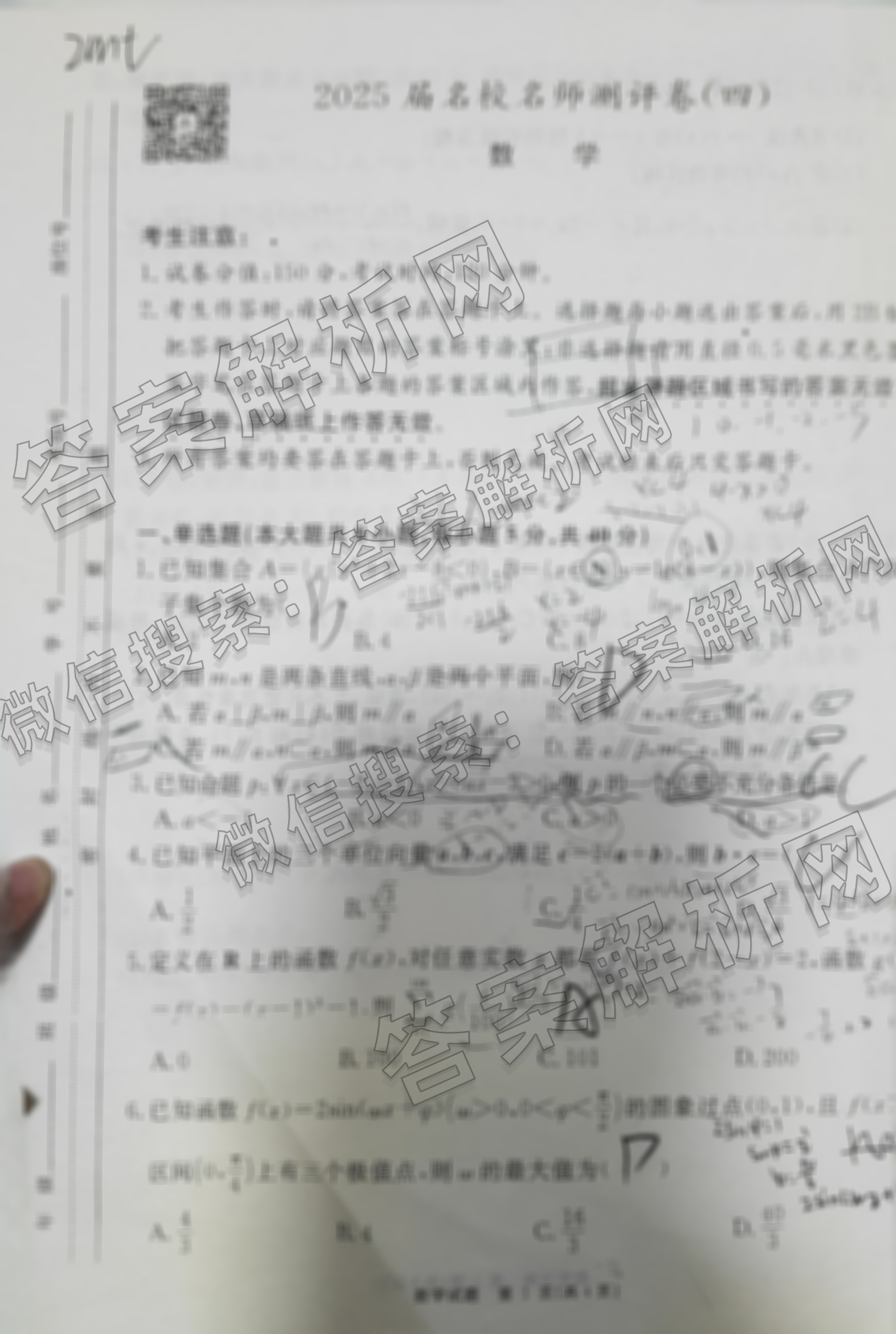 耀正文化·2025届名校名师测评卷(四)4数学试题由衡水金卷答案整理,获取更多耀正文化答案解析,请在各大应用商店搜索下载答案解析网APP。