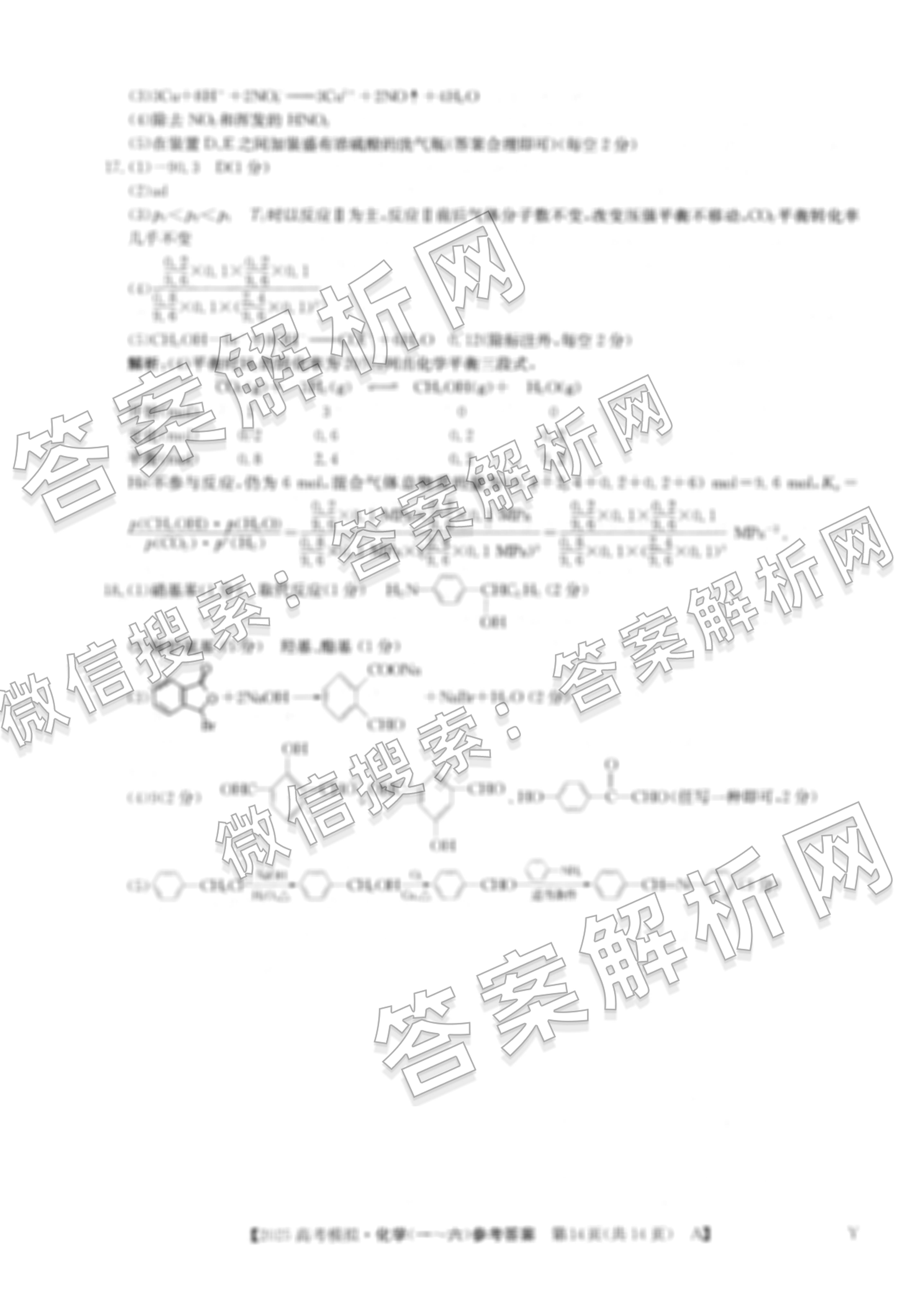 2025年普通高校招生选择性考试模拟调研卷(六)6化学(A Y)答案