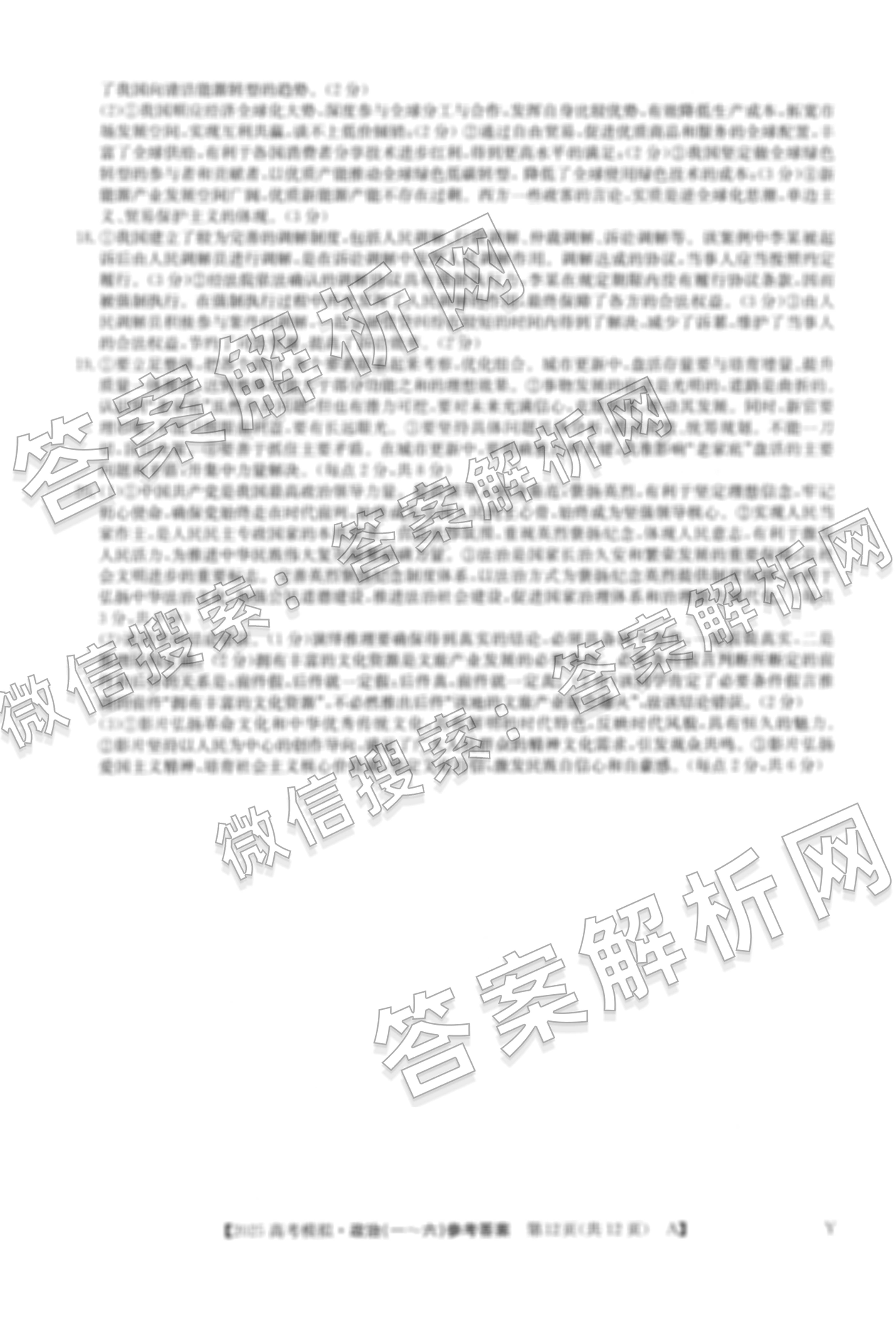 2025年普通高校招生选择性考试模拟调研卷(六)6政治(A Y)答案由衡水金卷答案整理,获取更多全国高考·模拟调研卷答案解析,请在各大应用商店搜索下载答案解析网APP。