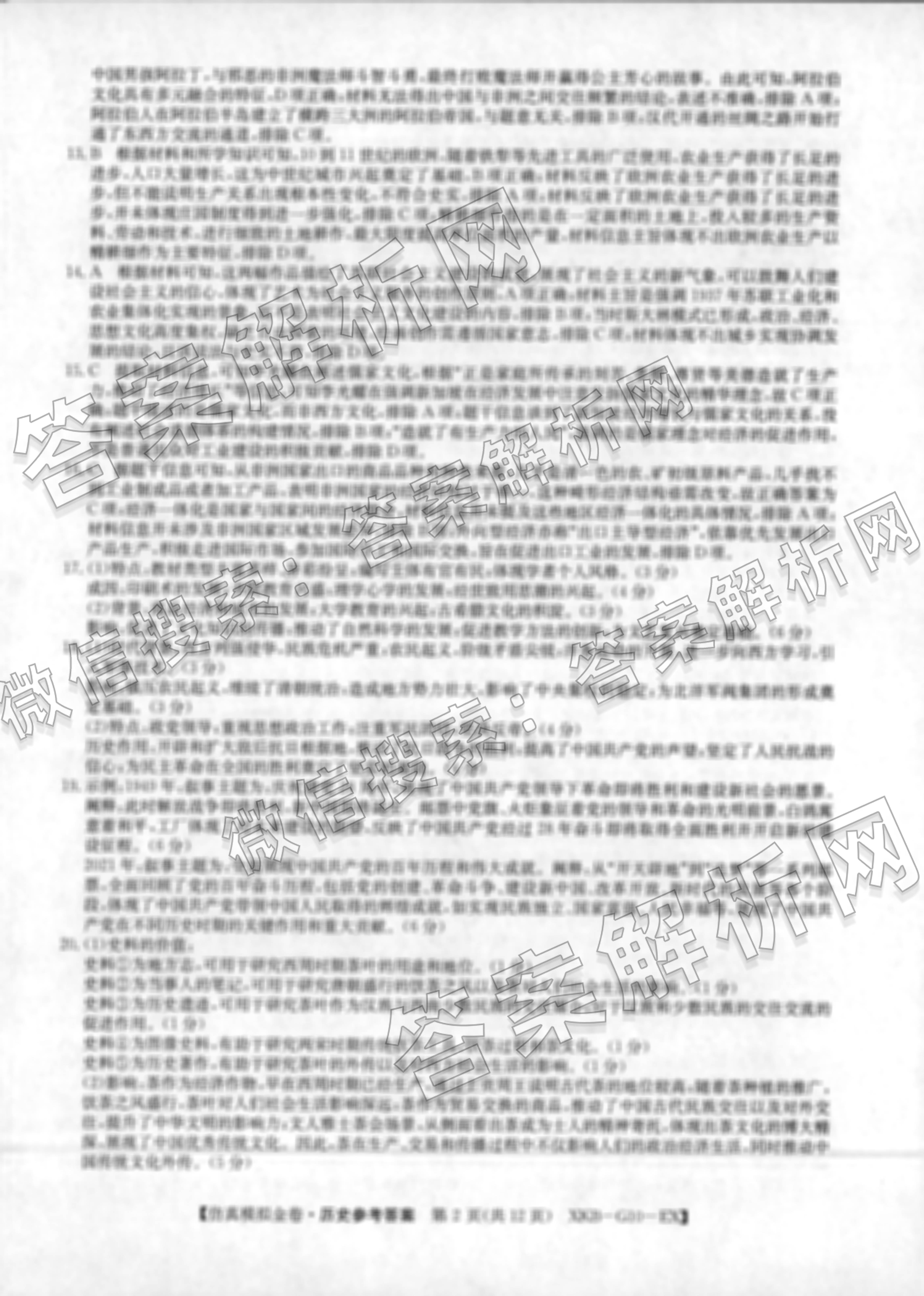 - (高三)XKB-G1-EX 2025届普通高中学业水平选择性考试[仿真模拟金卷](一)历史(XKB-G1-EX)答案
