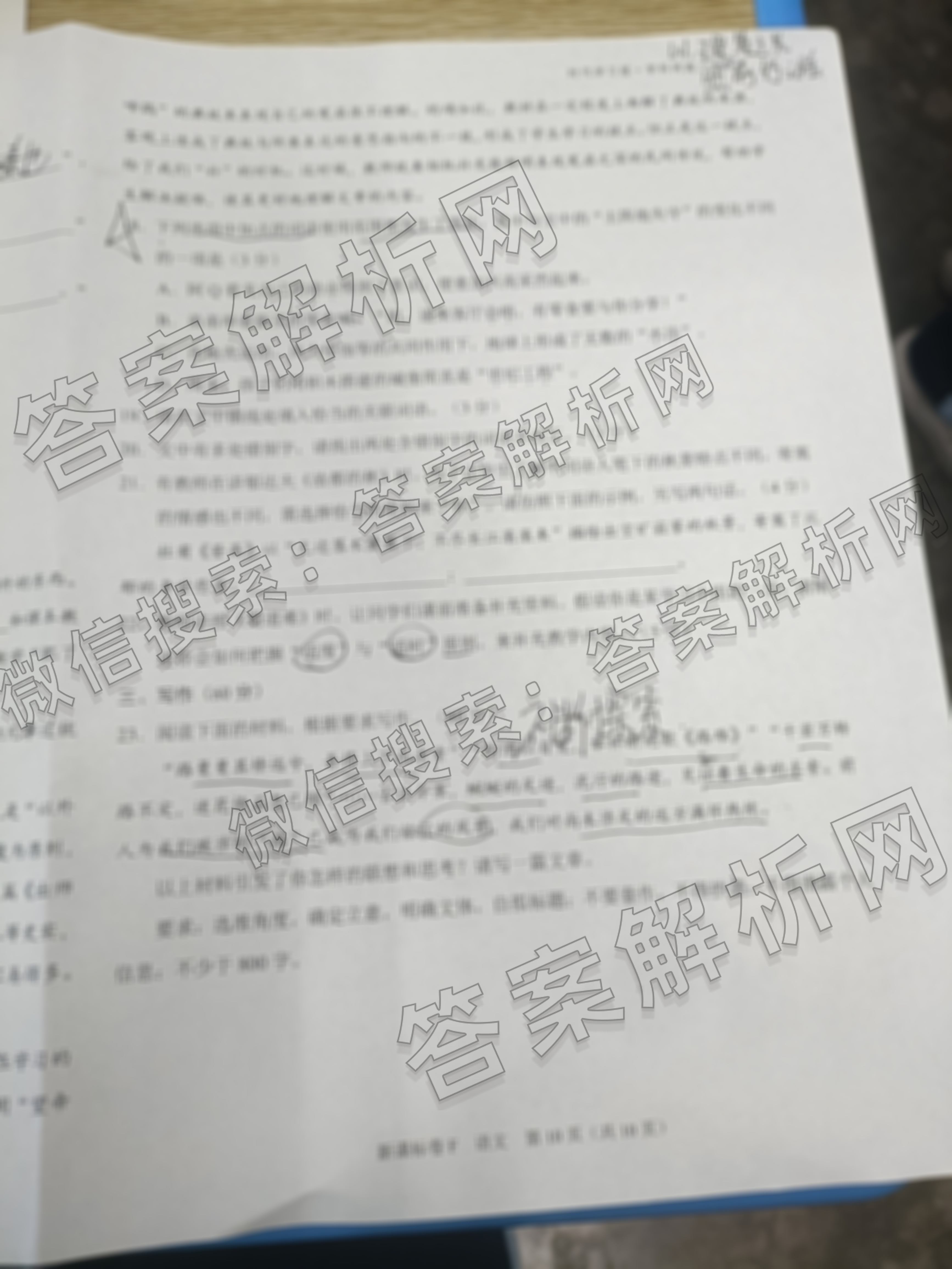 - [高三][学科网]2026届10月大联考语文(新课标卷D)答案
